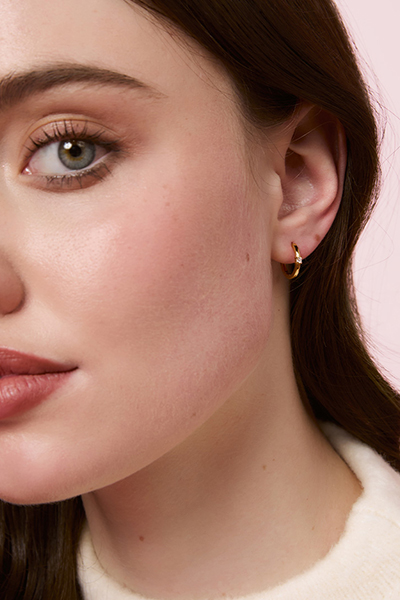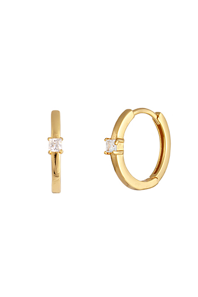 The Elsie Earrings by Bianc are delicate huggie hoops adorned with a single sparkling cubic zirconia at the centre. Set in from 18k gold plated sterling silver, their clean design makes them perfect for everyday wear—whether styled alone for subtle shine or layered with other pieces for a curated ear look.
