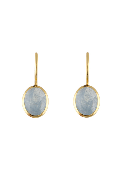 The Glaze Earrings by Bianc feature an oval cut Milky Aquamarine gemstone, set in 18k gold plated sterling silver. The soft blue tones add a hint of calm sophistication, making these earrings a perfect everyday staple or subtle accent for special occasions. Lightweight and easy to wear, they bring a refined touch to any outfit.