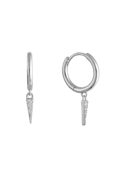 The Lyla Earrings by Bianc feature a polished hoop with a fine pointed drop, adorned with cubic zirconia for subtle sparkle. Set in rhodium plated sterling silver, they are lightweight and versatile, perfect for adding a modern twist to your everyday ear stack.