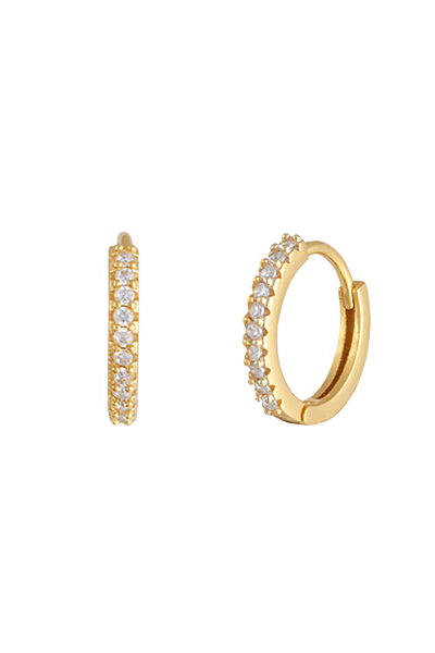 The Pixie Earrings by Bianc are the perfect everyday huggies with a touch of sparkle. Set in 18k gold plated sterling silver and encrusted with pavé-set cubic zirconia, they hug the ear comfortably while adding just the right amount of shine. Wear them solo for a minimalist look or stack them with other styles for a curated ear.