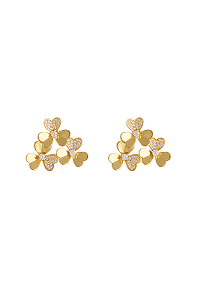 The Stellar Earrings by Bianc feature a cluster of delicate floral motifs in gleaming gold, each finished with pavé-set cubic zirconia for a sparkling finish. Set in 18k gold plated sterling silver, these multi-bloom studs catch the light beautifully and add instant elegance to any outfit. Perfect for weddings, parties, or when you want to feel a little extra.