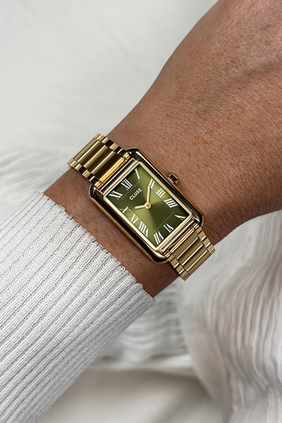 The new rectangular Belisenna watch for women exudes timeless elegance. Featuring a 21 mm gold coloured case, Green dial and gold coloured 14 mm 3-link stainless steel strap. It's the perfect blend of classic charm and sophistication for any occasion. Easily customise the look of your watch with any 14 mm strap. You can adjust the strap size by yourself.