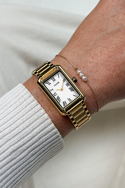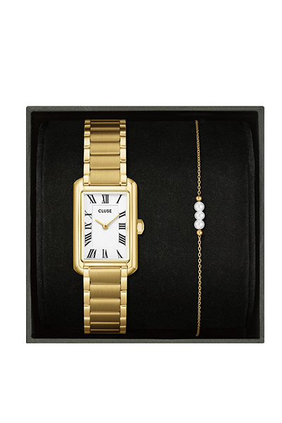 This CLUSE gift box for women combines the Belisenna women's watch with the gold bracelet. The Belisenna watch features a white coloured dial, 21 mm case and 3-link stainless steel strap. Pair the watch with the complementary gold coloured bracelet.