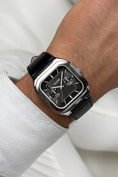 CLUSE Quadrus Multifunction Leather, Black, Silver Colour CW26203