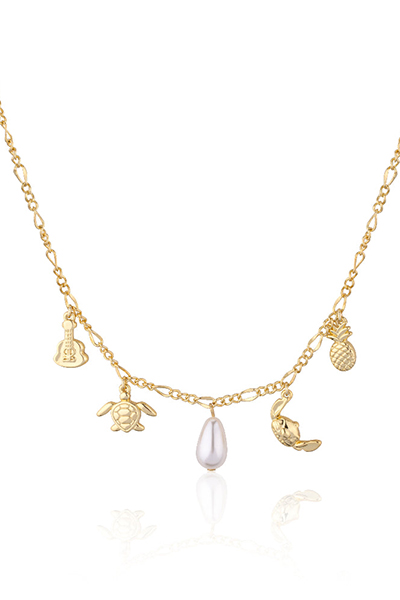 - Five charms, Eukele, Turtle, Stitch, Pineapple and faux pearl