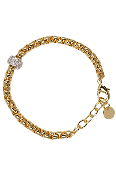 The Madeleine Bracelet by Zahar features a bold chain finished with a pavé-set cubic zirconia charm. Elegant with a hint of sparkle, this piece is perfect worn solo or layered for a more elevated look.